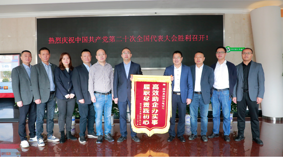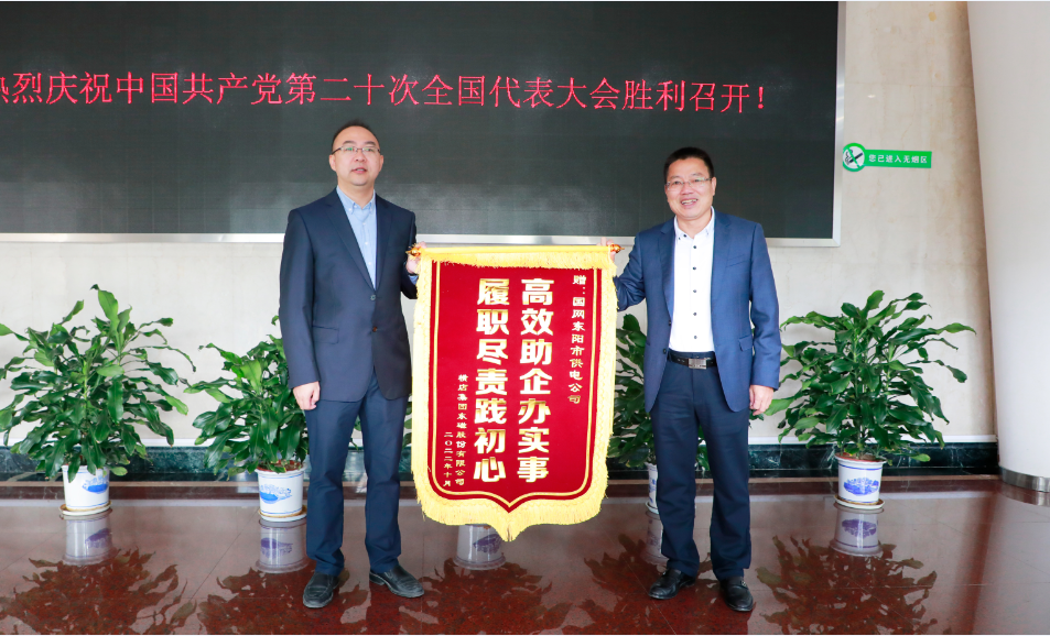 为谢谢供电部分在该变电站建设中给予的支持与资助 ,10月20日上午 ,横店pg网站麻将胡了副总司理任晓明一行代表公司 ,将印有 “高效助企办实事  履职尽责践初心”的锦旗交到了国网东阳市供电公司事情职员手里。