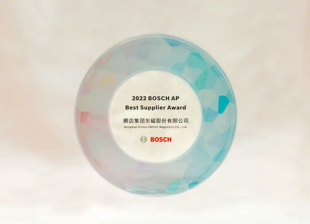 日前,横店pg网站麻将胡了依附多年来在磁性子料供应上做出的孝顺,被评为2022年度“博世亚太区最佳供应商”,是此次唯一获此奖项的磁性子料企业,也是继2019年获博世全球最佳供应商大奖后的又一殊荣。