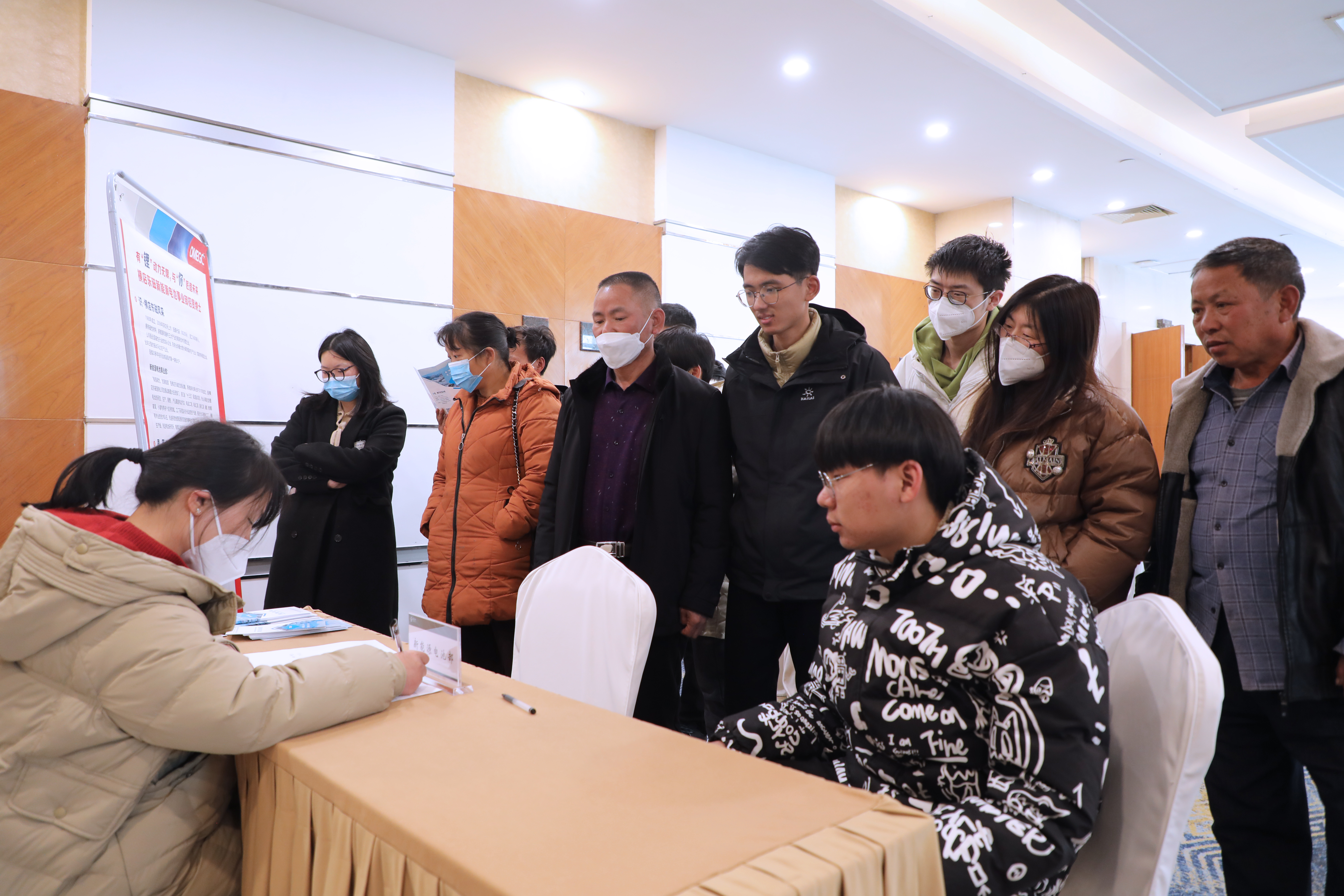 2022届结业生贾同砚也来到现场应聘,“我想应聘新能源电池部的手艺类岗位,今天大致相识到岗位信息,期待节后能去现场看一下。”