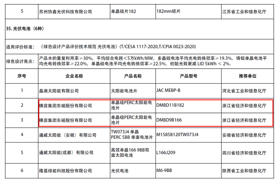 继2020年入选天下第五批绿色工厂名单之后,横店pg网站麻将胡了再次获得国家级绿色方面的认可——克日,国家工信部宣布2021年度绿色制造名单,公司六个型号的单晶硅PERC太阳能电池片、高效单晶硅组件产品成为“绿色设计产品” 。